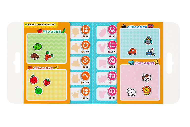 はって はがして 何度でも遊べる「ぺたぺたシールのおけいこ」です。